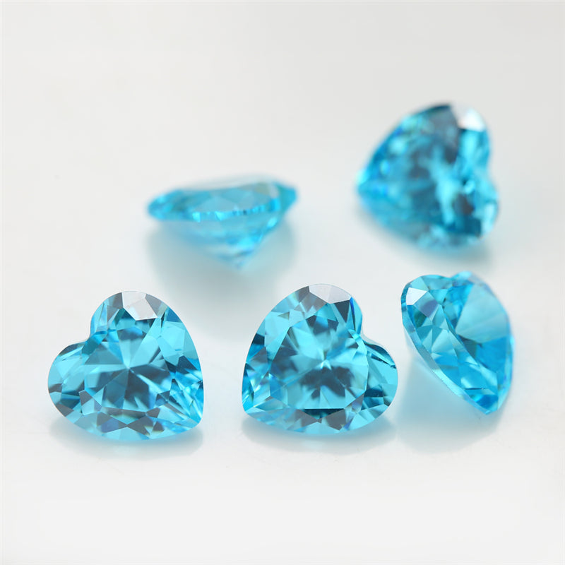 Size 3x3-10x10mm 5A Heart Cut Sea Blue CZ Stone Loose Cubic Zirconia Synthetic Gemstone for Jewelry